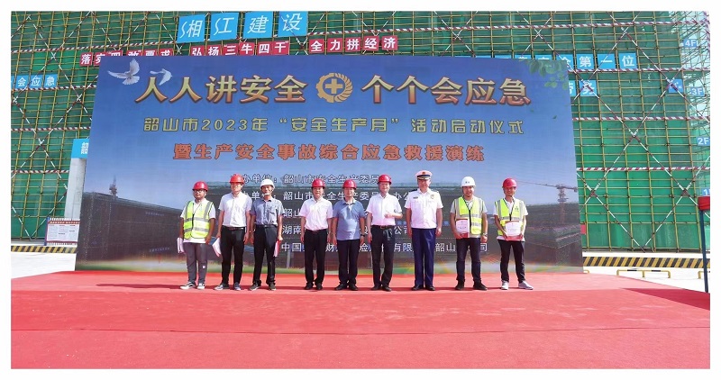 5月29日,韶山市2023年“安全生產(chǎn)月”活動啟動儀式暨生產(chǎn)安全事故綜合應(yīng)急救援演練活動在湘江公司韶山紅色培訓(xùn)教育基地一期工程項(xiàng)目工地舉行。韶山市人民政府常務(wù)副市長、韶山市安委會副主任賀樹峰、韶山市消..