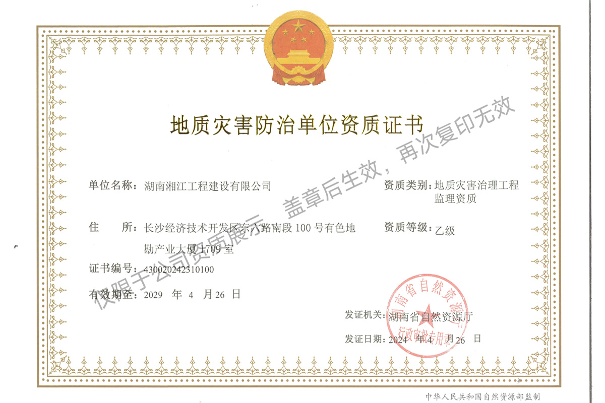 地質(zhì)災(zāi)害防治單位資質(zhì)證書(shū)
