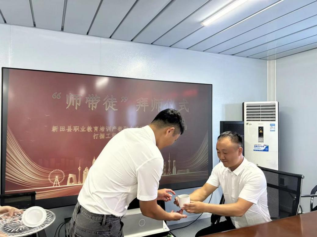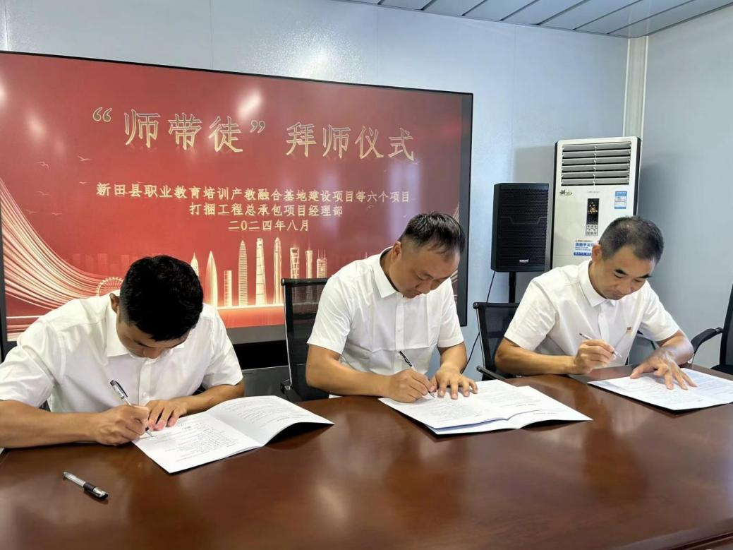 薪火傳承!新田職教培訓(xùn)基地項(xiàng)目部舉行“師帶徒”拜師儀式