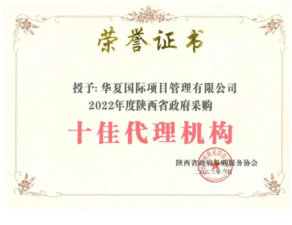 2022年度陜西省政府采購十佳代理機構